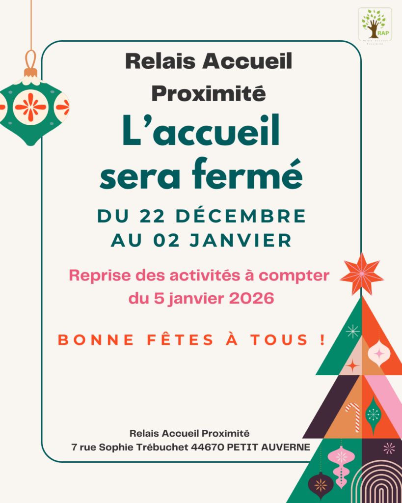 Fermeture de l’accueil du 22 décembre 2025 au 2 janvier 2026